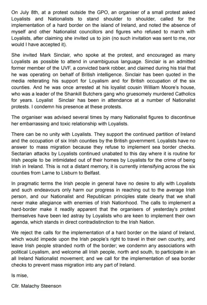 A statement by Malachy Steenson on this weeks events surrounding the GPO